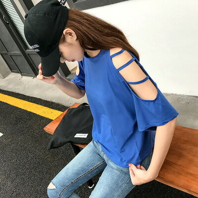 【即納あり】 ダンス 衣装 ヒップホップ ダンス衣装 韓国 ダンス 衣装 肩だし トップス セクシーな肌魅せがポイントのオーバーシルエット肩あきカットソートップス 半袖 5分袖 ブラック ブルー ホワイト オーバーシルエット 韓国ファッション
