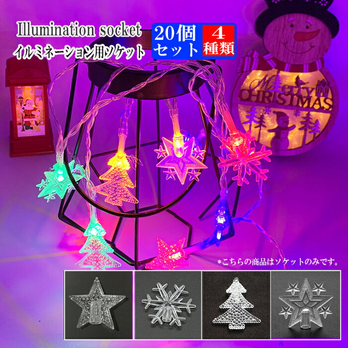 イルミネーション用 LED 電球 ソケット 4種類 クリスマスツリー 電飾 ソケット オーナメント デコレーション モチーフ ツリー 雪 星 サンタ ベル ボール アクセサリー
