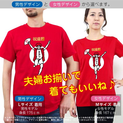 きっと、笑顔になる還暦祝いはシャレもん!! →→→大きいサイズはコチラから←←← 【Tシャツ サイズ】 ■メンズ(男女兼用)S・M・L・XL ■レディース(女性用)M・L ・プリントは1枚1枚手作業で行っています。