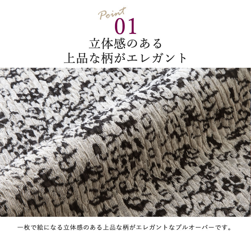 商品詳細一枚で絵になる立体感のある上品な柄がエレガントなプルオーバーです。