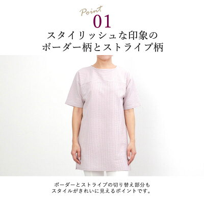 商品詳細シアサッカーの凹凸感が清涼感があり、ソフトでサラッとした風合いで快適な着心地の半袖チュニック。