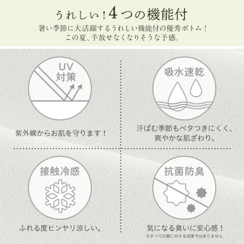 美脚シルエット×伸縮性のあるジョーゼット素材!●point1 「ひんやり涼やか!嬉しい4つの機能付」暑い時季に大活躍!嬉しい多機能付の優秀ボトム。