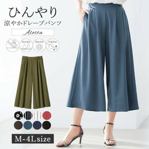 【1000円OFFクーポン配布中】≪10%OFF≫●アウトレット●【WEB限定】【接触冷感】【4つの機能付】ひんやりドレープパンツ ベルーナ ワイドパンツ UV対策 UVカット ゆったり 大きいサイズ ガウチョパンツ スカンツ 汗対策 体型カバー Alotta アロッタ