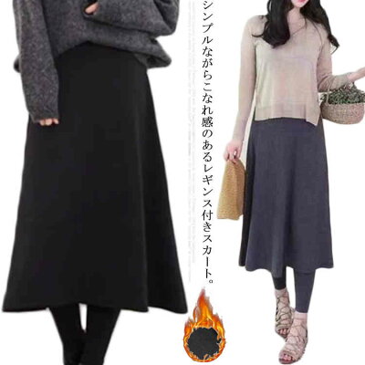 【送料無料】スカート付き レギンス 裏起毛 ボトムス スパッツ スカッツ レディース 大人可愛い 秋 冬 あったか 無地 タイトスカート 体型カバー ストレッチ 大きいサイズ ミモレ丈 フレア ファッション 裏起毛 防寒対策