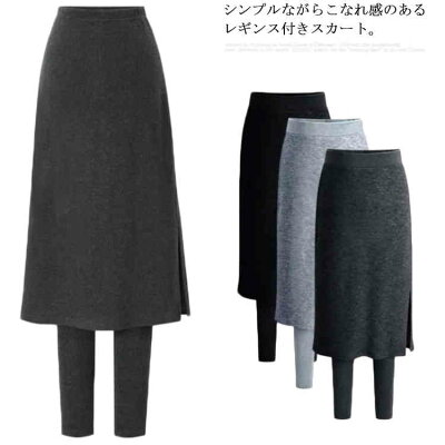 レギンス レディース スカート付レギンス スカート シンプル 無地 フレアスカート スキニー ストレッチ ウエストゴム 薄手 春 秋 ブラック 黒 グレー サイドスリット ボトムス スパッツ スカッツ レディース 大人可愛い 大きいサイズ 秋 冬 あったか 無地 タイトスカート