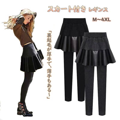 レギンススカート スカート付きレギンス 裏起毛 ボトムス 厚手 大きいサイズ スカートレギンス サイドスリット パンツ スパッツ スカッツ レディース スカート付き フェイクセット 大人 可愛い 秋 防寒